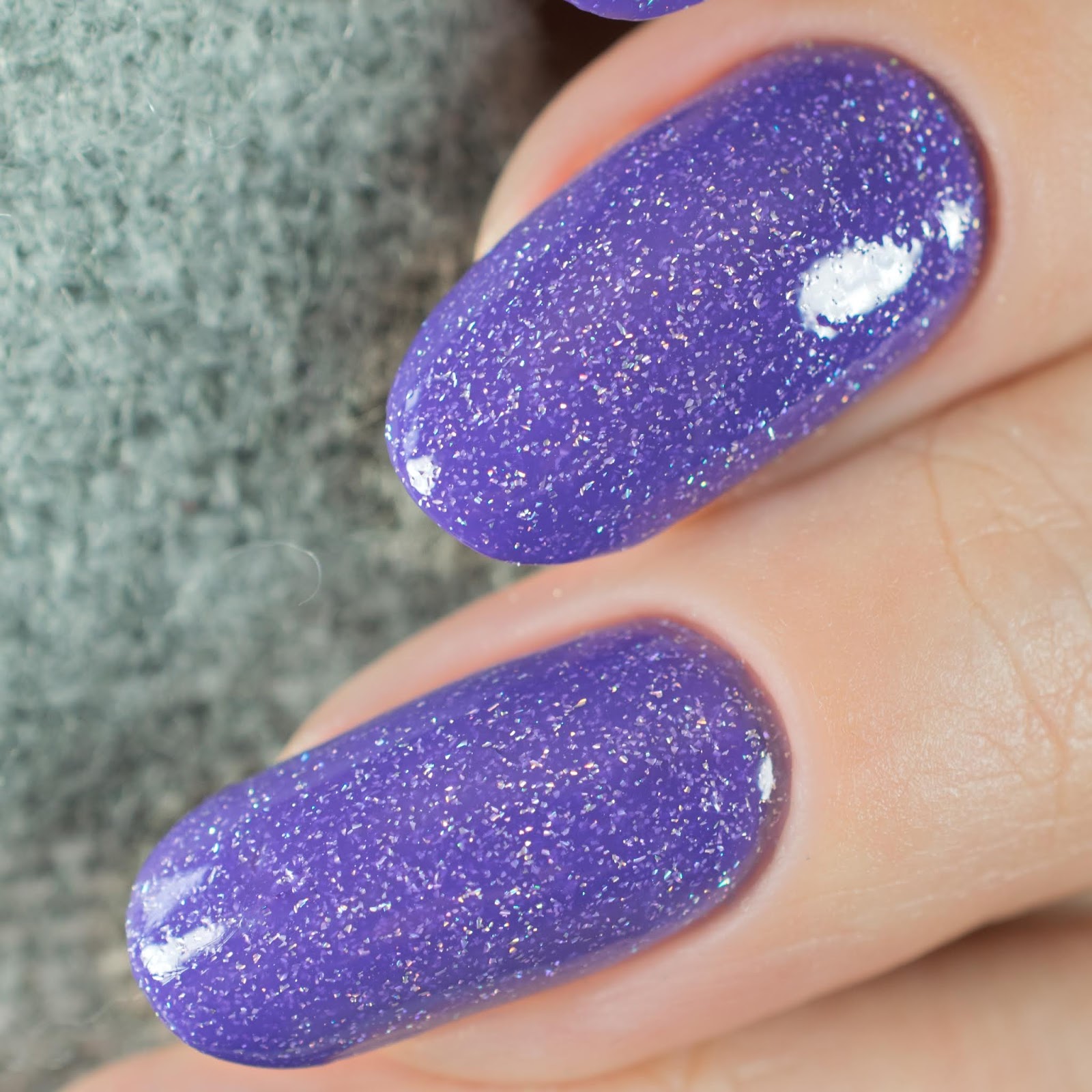 Sweet and soft lilac shade, sprinkled with holographic micro-flakes.